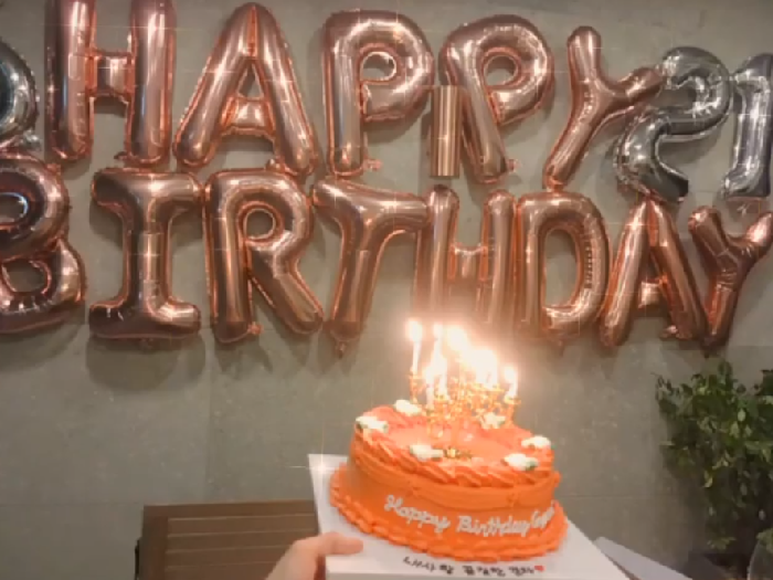 해당 사진에는 ‘HAPPY BIRTHDAY(해피 버스데이)’라고 적힌 풍선과 ‘내 사랑 꽃길만 걷자’는 문구가 적힌 생일 케이크가 담겨있다.