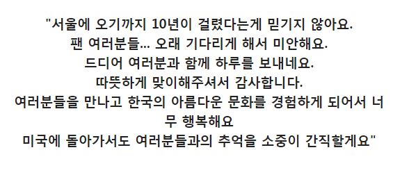 팬들을 향한 마음과 공연의 퀄리티, 한국 문화에 대한 이해 등 팬들의 칭찬이 끊이지 않았다는 그의 첫 내한공연 찬양 후기를 살펴보자.