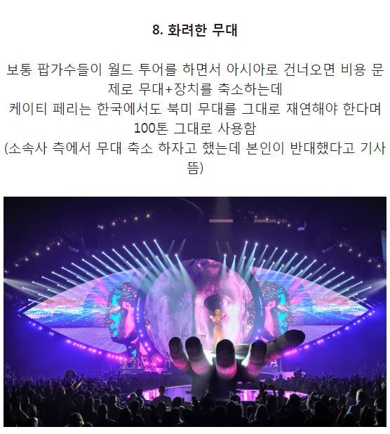 공연을 봤던 한 팬은 온라인 커뮤니티에 케이티 페리의 공연은 역대급이라며 그 이유를 설명했다.
