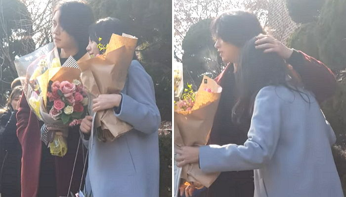 김소혜가 졸업식 인증샷을 남기는데 한창일 때 선배 가수 김희철이 졸업식 현장에 나타났다.