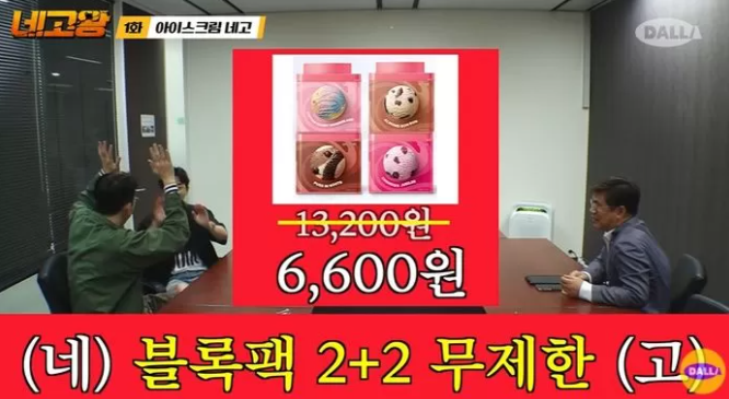 ‘네고왕3’ 딘딘과 슬리피가 배스킨라빈스 할인 협상에 성공했다.