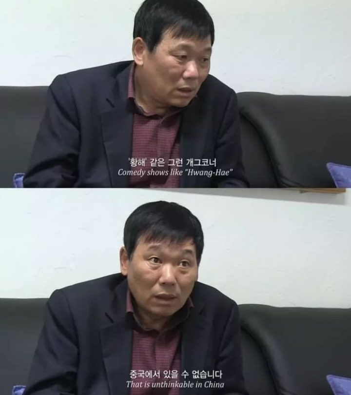 이어 과거 개그콘서트에 “황해 같은 그런 개그코너는 중국에서 있을 수 없습니다”라며 중국에서 이런 프로그램을 만들었으면 이튿날 문 닫아야한다고 전했다.
