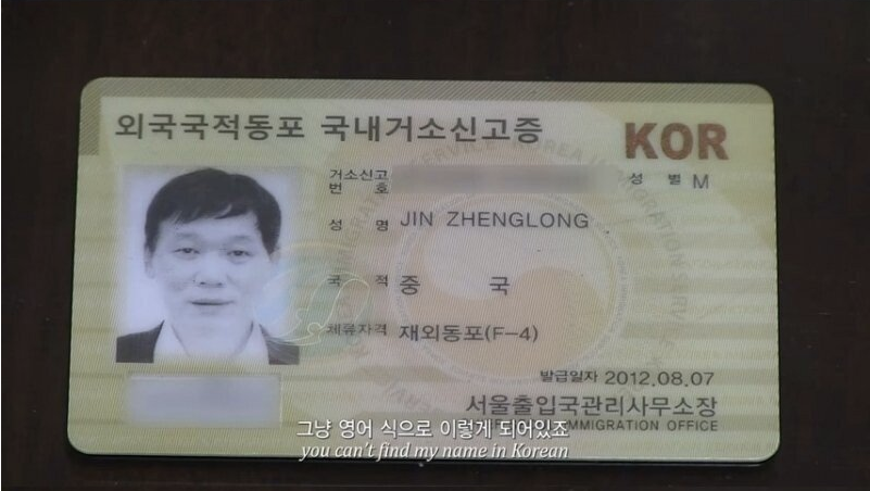 사진 속 등장한 조선족은 중국과 한국의 신분증을 비교하며, 중국의 신분증에는 한문과 한글이 다 적혀있으나, 한국의 신분증에는 영어로만 적혀있다고 말했다.