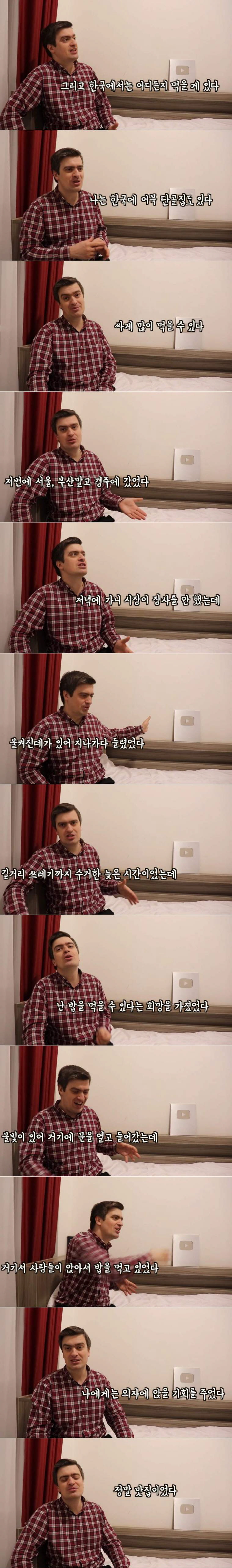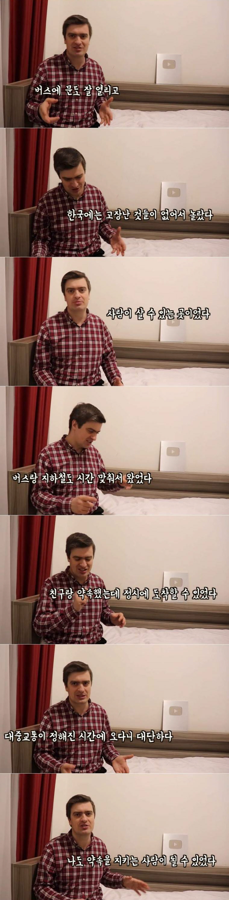 남성은 “한국은 고장 난 것들이 없어서 놀랐고, 사람이 살 수 있는 곳이었습니다. 버스랑 지하철도 시간 맞춰서 오고, 어디든지 먹을 게 있습니다.”라며 이야기를 시작했다.