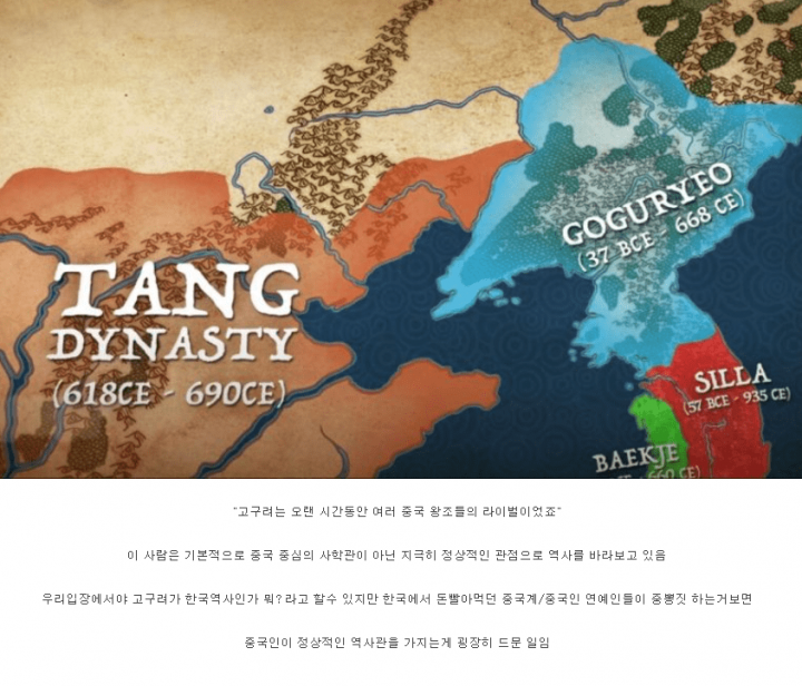 작성자는 “우리나라 입장에서 고구려가 한국 역사인거 대수롭지 않게 생각하겠지만 중국인이 정상적인 역사관을 가지는게 굉장히 드문 일이다”라고 설명했다.