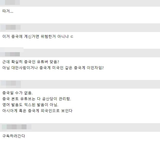 하지만 국내 누리꾼들은 이 글을 보고 중국인 유튜버를 걱정하기 시작했다.