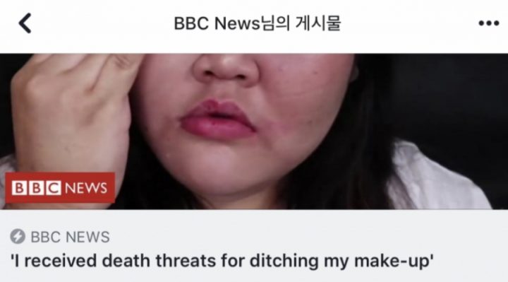 BBC NEWS는 세계의 아름다움 중심인 한국에서 젊은 여성들이 배리나처럼 화장을 더이상 하지 않겠다고 선언했던 한국의 상황을 알렸었다.