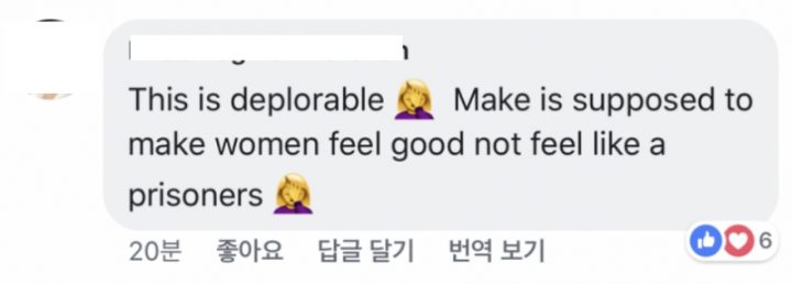 “정말 한탄스럽다. 화장은 여자를 기분좋게 하는거야, 범죄자처럼 느끼게 하는게 아니라”