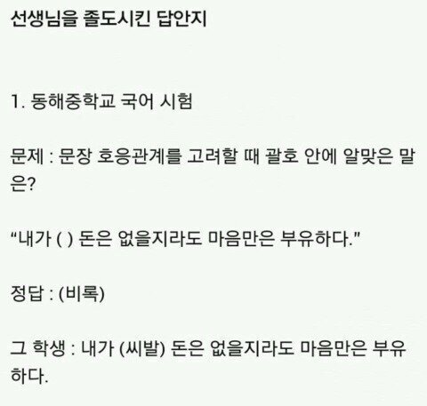 특히 선생님의 경우 누군가를 가르치는 일을 하다보니 더욱 ‘옳고 그름’ 등에 엄격해지는 편인데, 여기 그러한 엄격한 선생님들을 그대로 녹아내리도록 한 학생들의 ‘독특한’ 답안지들이 화제다.
