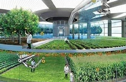 인공지능과 소수 인력으로 운영되는 공장이 국가에 필요한 식자재를 대량 생산해 저렴한 가격으로 공급한다.