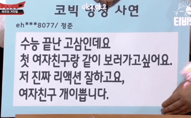 그중 ‘수능 끝난 고3인데요. 첫 여자친구랑 같이 보러가고 싶어요. 저 진짜 리액션 잘하고요, 여자친구 개이쁩니다’라 사연이 알려져 보는 이들의 이목을 끌었다.