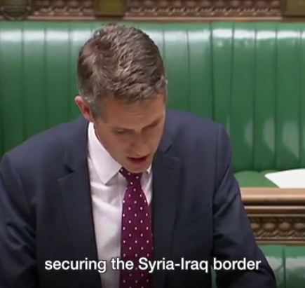 윌리엄슨 국방부 장관은 의회에서 이슬람국가(IS·Islamic State)와의 전투와 관련된 발언을 하고 있었다.