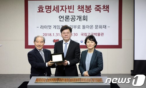 지난달 31일 국외소재문화재재단은 라이엇 게임즈와 함께 서울 국립고궁박물관에서 ‘효명세자빈 책봉 죽책 언론공개회’를 열었다.