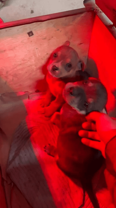 게시 된 영상에는 탄창 박스 안에 구조된 갈색 강아지 두 마리를 볼 수 있었다.