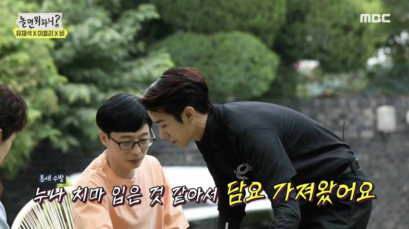 광희는 음료수를 나눠주며 “누나 치마 입은 것 같아서 담요 가져왔어요”라며 이효리에게 담요를 건냈다.