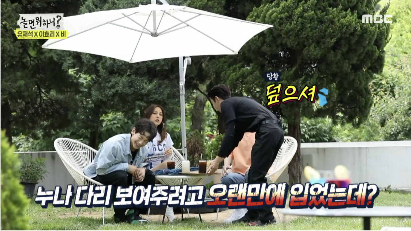 짧은 치마를 입은 이효리를 향해 담요를 건낸 광희에게 이효리가 보인 반응이 웃음을 불러 일으켰다.