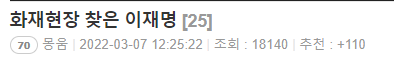 또 다른 논란이 일어났는데 윤석열 대선 후보가 산불 현장에 급하게 달려갔을 당시 이재명 더불어민주당 대선 후보가 4일 여성 회원수가 많은 온라인 커뮤니티인 ‘여성시대(여시) 카페’에 게시글을 올려 여성 공약을 소개하며 지지를 호소했다.
