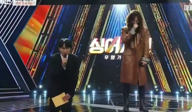 어제 8일 생방송한 jtbc ‘싱어게인’에서 MC를 맡던 이승기가 갑자기 시청자를 향해 무릎을 꿇는 일이 일어났다.