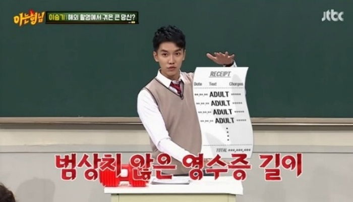 문제는 다음날 호텔에서 체크아웃할 때 발생했다. 엄청난 길이를 자랑하는 영수증을 보고 메인 작가가 이승기를 불렀던 것.