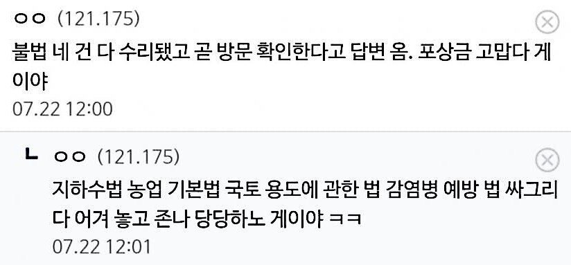 다음은 해당 글의 전문과 해당 글을 신고한 유저의 댓글이다.