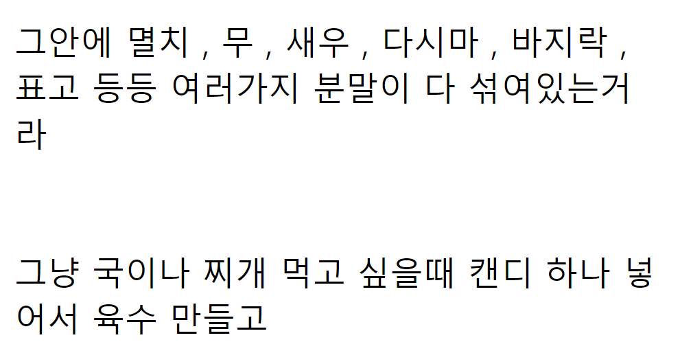 A씨는 “국물 낼 필요도 없어서 가스비, 전기세 절약도 되구” 라고 전했다.