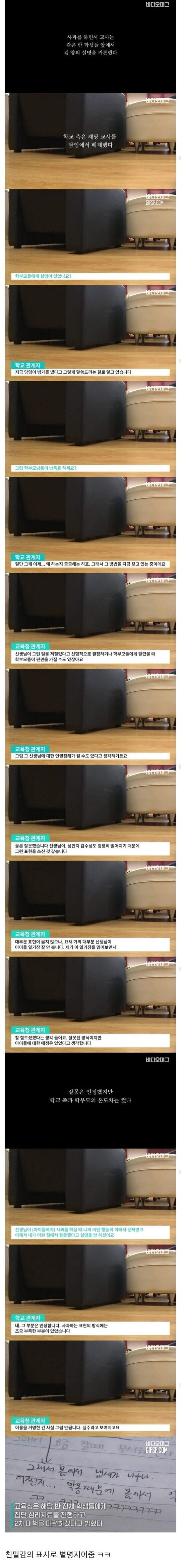 “담임교사라는 사람이 왜 아이들에게 이상한 별명을 붙이면서 괴롭혔는지 저로서는 정말 이해할 수가 없어요.”라며 당시 상황을 전했다.