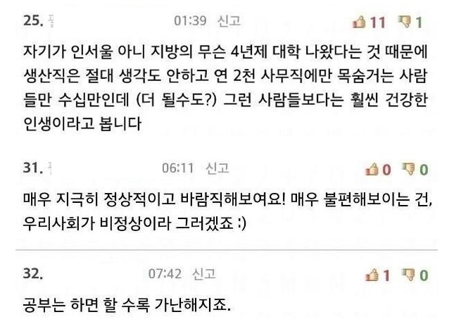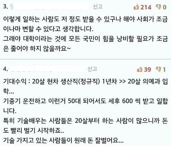 사촌동생이 전문대를 나와 7천의 연봉을 받는 것과 비롯해 고졸에 곧바로 ‘생산직’에 뛰어들어 일하는 사람들에 대한 한국 최고 명문대 ‘서울대생’의 반응은 어떨까.