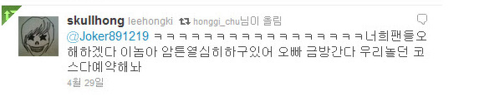 이홍기는 “야! 쑥스럽다.. 후후”라고 받아치며 마무리하려고 했지만 계속된 용준형의 글에 결국 그를 보호하기 위한 최후의 답글을 단다.