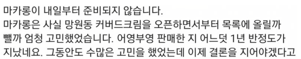 A씨는 “마카롱이 내일부터 준비되지 않습니다.” 라 첫 문장을 전했다.
