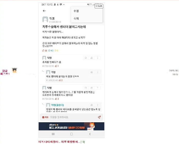 이어 그는 “.엉덩이에 생리대 테이프를 남는 공간 없도록 잘 붙였는데 자꾸 떨어진다. 입는 방법이 있냐”고 물었다.