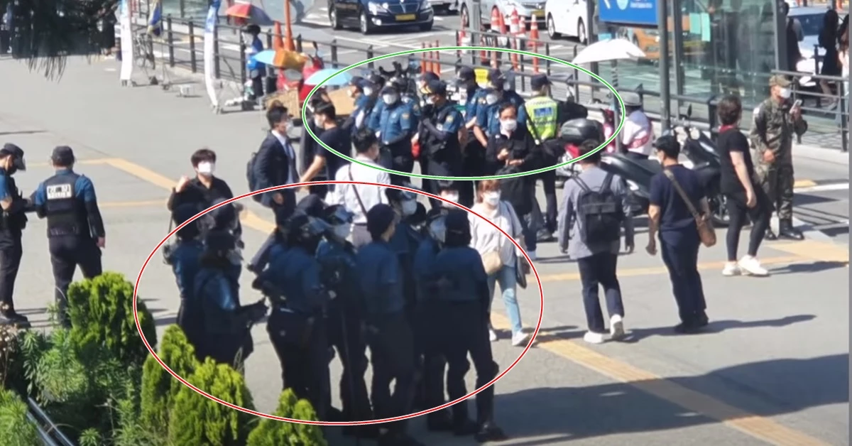 하지만 , 반대로 여경들은 그늘막에서 아무 것도 하지 않은 채 부채질을 하고 있는 모습을 볼 수 있었다. 라고 말하며 어이가 없었다는 마음을 표현했다.
