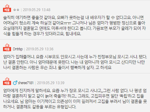 어느 남자가 어머니까 지 모시고 살까 싶습니다.