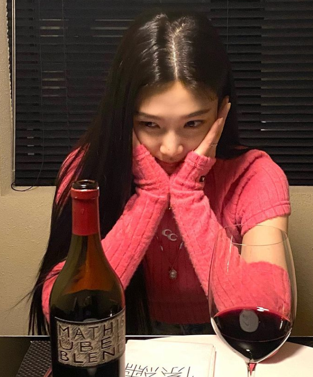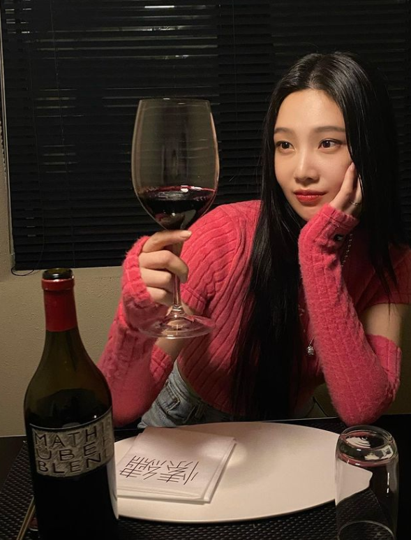 게시 된 사진 속 조이는 한 식당에서 레드 와인 매티스 우버블렌드를 마시고 있는 모습이었다.