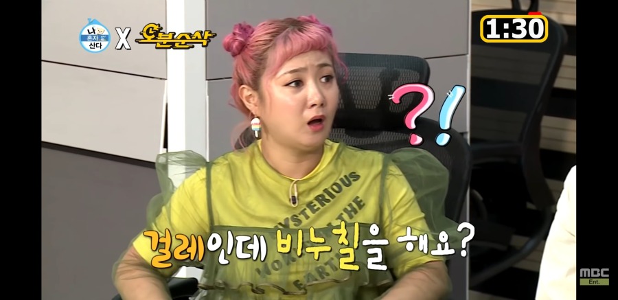 박나래는 정말 황당하다는듯 “네에?”라고 되묻자 옆에서 이를 듣고 있던 이시언과 성훈은 “걸레 빨 때 비누칠 안했던 것 같던데”, “걸레는 빨아도 걸레다”라며 세탁을 하지 않는다고 답했다.