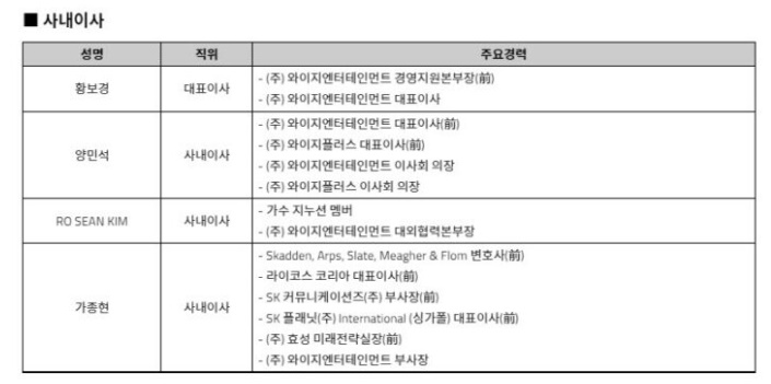 양현석과 함께 물러났던 동생 양민석도 올 2월 다시 사내이사로 복귀했다고 하니, 기만도 이런 기만이 없는 것으로 보여진다.
