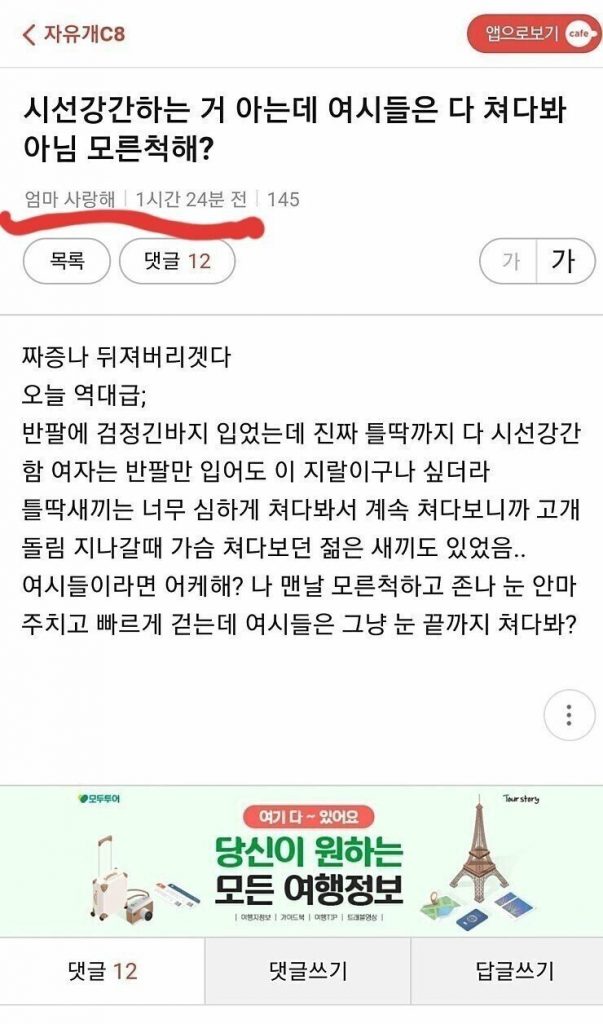 최근 한 커뮤니티에서 난리난 글이 있다.