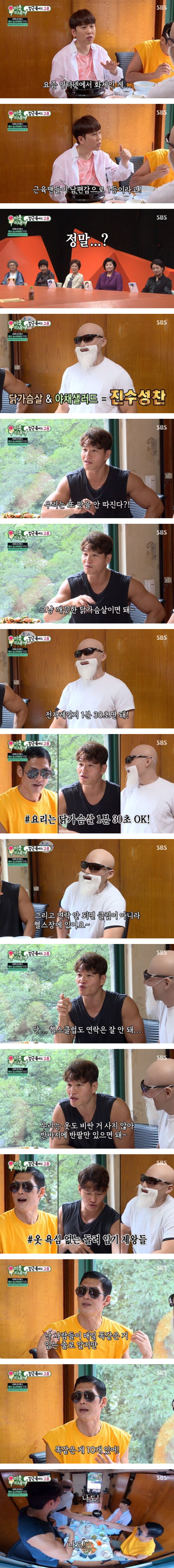 이에 “운동을 하는 남성들은 음식 맛을 따지지 않는다.”, “그냥 깨끗한 닭가슴살이면 된다.”, “요리는 전자레인지 1분 30초면 된다.”라고 답했다.