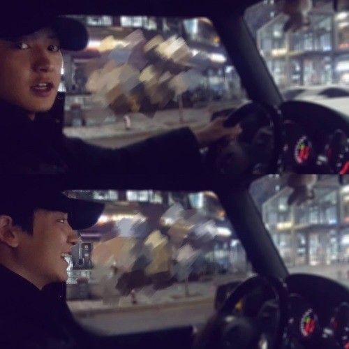 사진 속 찬열은 운전석에 앉아 즐거운 미소를 짓고 있다.