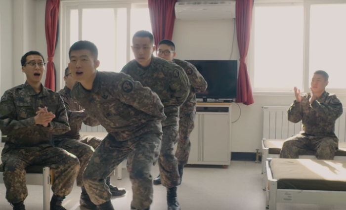 이어 다른 군인들이 봅슬레이, 컬링 등 동계 스포츠 종목을 몸으로 묘사했다. 영상은 “평창 올림픽, 우리 육군이 함께하겠습니다”라는 지창욱의 멘트로 마무리된다.