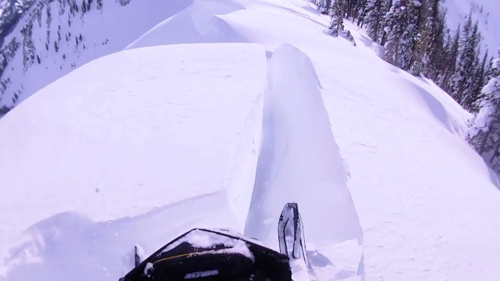 쌓여있는 눈이 갈라지더니 절벽 밑으로 떨어진다.