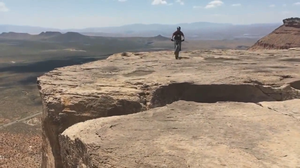 # 5위 영상. 높은 낭떠러지 절벽 옆에서 자전거로 틈을 넘으려던 순간