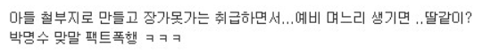 이를 본 네티즌들은 “박명수가 맞는말 했구만”, “난 처음 봤을 때부터 엄마가 이상하다고 느꼈다”, “옥죄이는게 느껴짐”등의 반응들을 보였다.