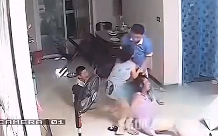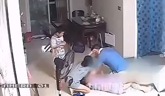 어린 자녀들이 보는 앞에서 아내를 폭행하는 남성의 모습이 공개돼 인터넷에서 공분을 사고 있다.