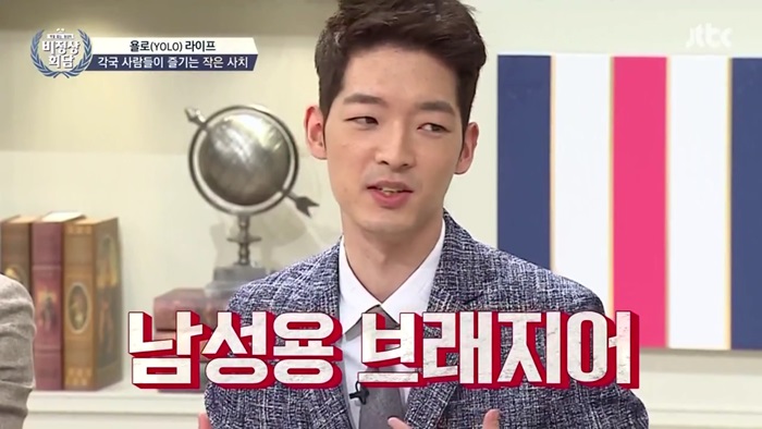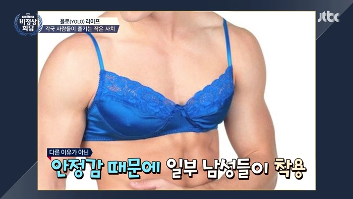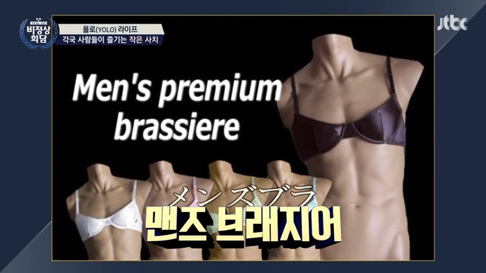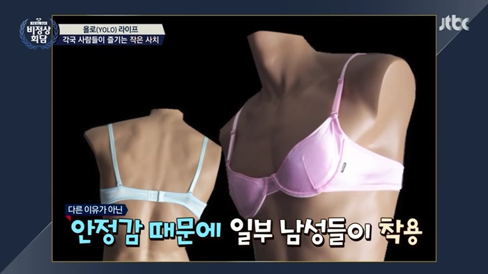 이에 유세윤이 “일본의 일부 남성들은 특별한 소비를 통해 스트레스를 푼다고 들었다”며 운을 뗐는데 여기서 오오기는 남성용 브래지어를 소개했다.