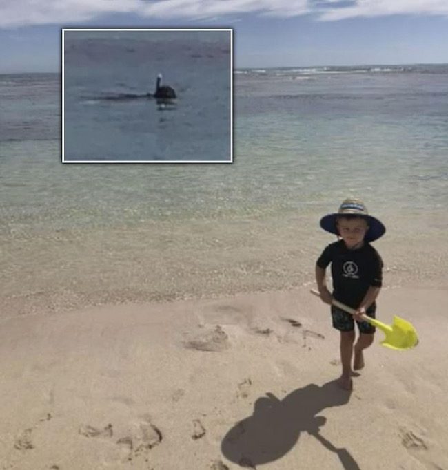 던컨 크루(32)는 아들 레비(3)가 모래 위에서 노는 동안 스노클링을 하고 있었고 아내는 이 장면을 사진으로 찍었다.