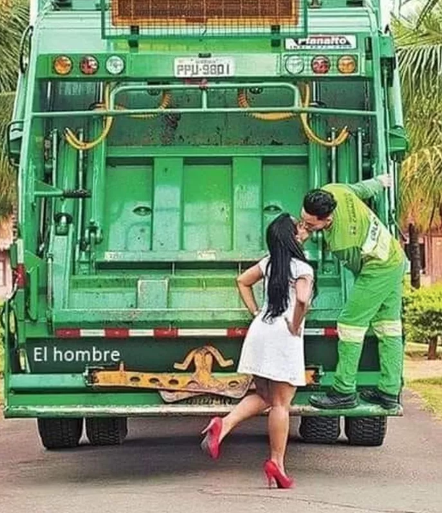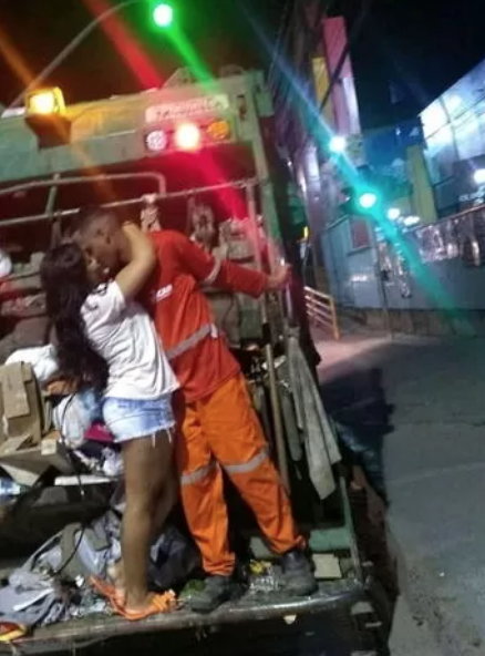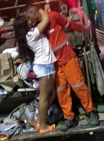 최근 한 해외 온라인 커뮤니티에 환경미화원과 그의 여자친구가 진한 키스를 하고 있는 사진이 게재됐다.