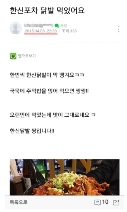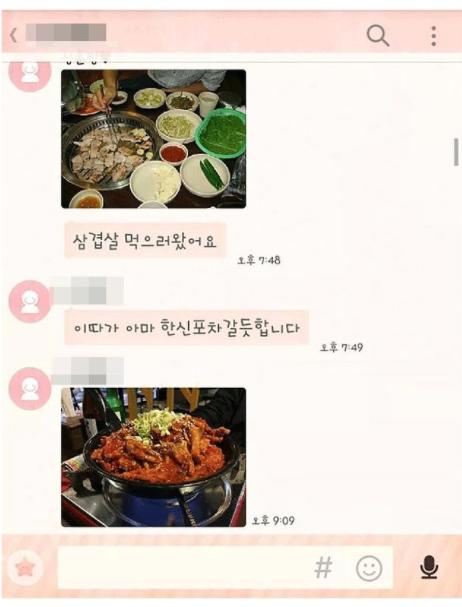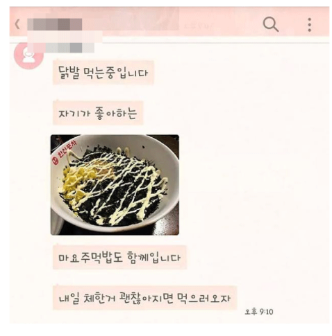 한신포차를 갔다면서 주먹밥 사진이나 닭발 사진 보낸 남자친구.