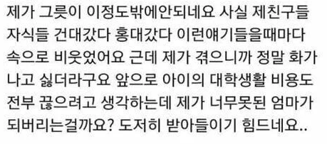이어서 글쓴이는 “건국대 밖에 못 간 딸 때문에 너무 속상하고 등록금 조차 주기 싫습니다. 딸에게 반수를 권유해 봤지만 하기 싫다고 합니다.”라고 말을 덧붙였다.