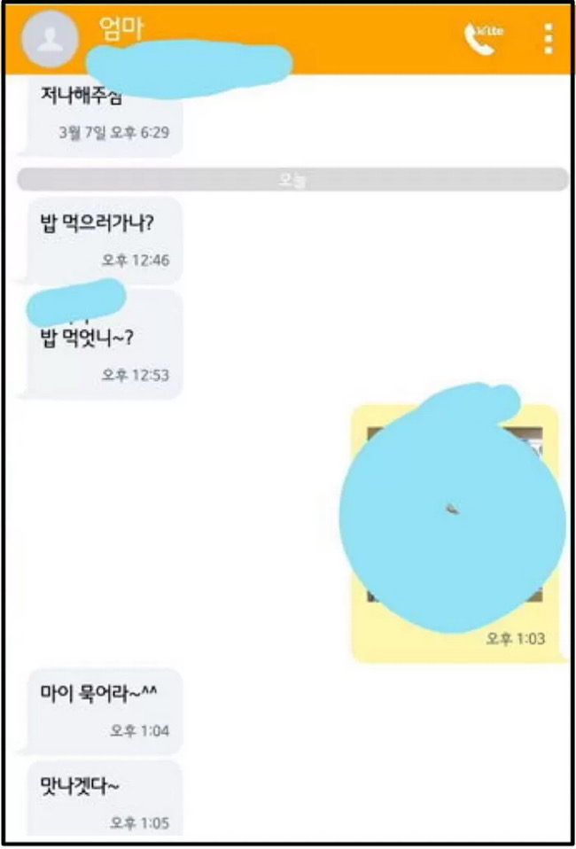 어느 평범한 날, 점심시간이 가까워 올 수록 두려움에 덜던 A씨에게 엄마가 문자를 두통 보냈다.
