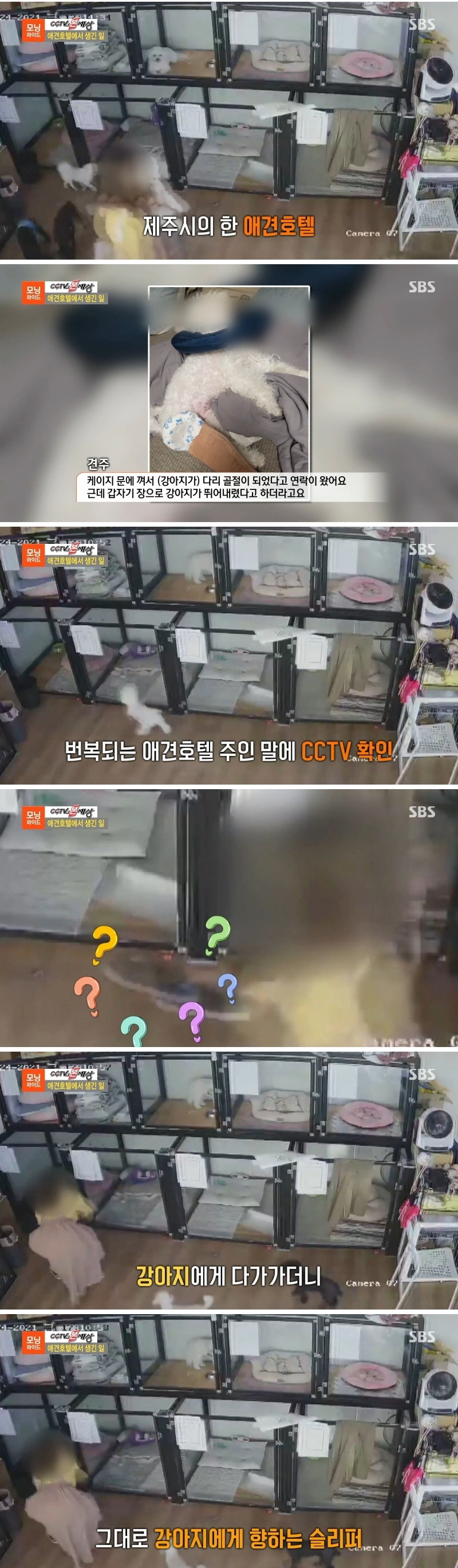견주는 “케이지 문에 강아지가 끼어서 다리가 골절되었다고 연락을 받았는데 번복되는 애견호텔 주인 말에 CCTV를 다시 확인했어요.”라며 당시 상황을 전했다.